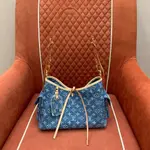 Този модел от луксозната линия съчетава небрежния чар на денима с изисканата визия на емблематичния дизайн. Изработена от висококачествен текстил с монограмен десен, чантата впечатлява с балансирана структура и фини кожени акценти. Меката форма е допълнена от странични джобове и декоративни елементи, които придават функционалност и характер. Регулируемата презрамка позволява различни начини на носене, съобразени с динамичното ежедневие. Дизайнерският дом пресъздава съвременна женственост с леко винтидж вдъхновение.