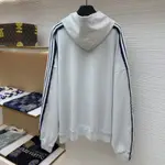 Този модел от престижната колекция представя съвършен баланс между комфорт и съвременен стил. Луксозната линия използва висококачествен памук, който осигурява мекота и приятно усещане при носене през целия ден. Контрастните странични ленти добавят динамика и спортен характер, докато минималистичният лого акцент подчертава идентичността на дизайна. Свободният силует и качулката създават усещане за effortless стил, подходящ за модерното ежедневие. Дизайнерският дом интерпретира класическия hoodie в по-изискан и актуален прочит.