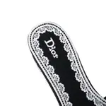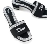 Моделът „Dentelle Heeled Slide“ въплъщава модерната елегантност чрез фин баланс между текстура и форма. Дизайнерският дом представя силует с отворен пръст и стабилен ток, който осигурява увереност и комфорт през целия ден. Горната част е обогатена с деликатен дантелен акцент, който придава романтичен характер на иначе минималистичната визия. Контрастните детайли подчертават линията и добавят дълбочина към цялостното излъчване. Иконичният дизайн съчетава женственост и съвременна лекота.