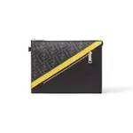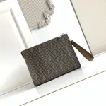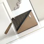 Моделът FF Diagonal Clutch впечатлява със своя динамичен дизайн и изразителна геометрия. Луксозната линия комбинира висококачествен текстил с емблематичен монограм и гладка кожа, създавайки изискан контраст между текстури и цветове. Диагоналните панели и металните ципове придават модерна структура, докато елегантната форма запазва минималистичния силует. Практичната каишка за китката добавя удобство и функционалност, превръщайки аксесоара в стилен спътник за динамичното ежедневие. Иконичният дизайн е създаден като съчетание между градска елегантност и съвременен лукс.