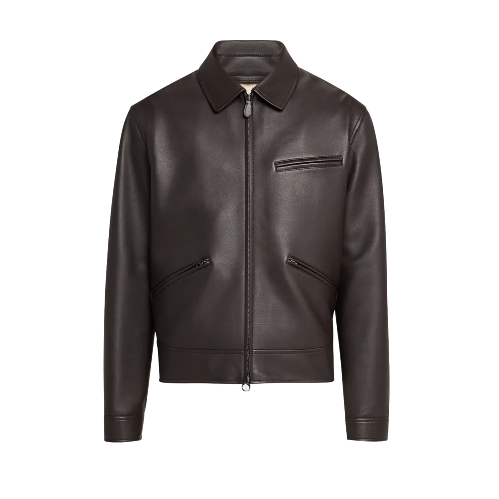 Моделът Chocolate Brown Leather Moto Jacket въплъщава безвременната елегантност на класическото кожено яке. Луксозната линия използва висококачествена гладка кожа с наситен шоколадов нюанс, която придава дълбочина и изтънчен характер на визията. Прецизната изработка се подчертава от изчистения силует, централния цип и внимателно разположените джобове, които съчетават функционалност и стил. Класическата яка и минималистичните линии създават модерен баланс между елегантност и мъжествено излъчване. Иконичният дизайн е създаден за хора, които ценят премиум качеството и вечния стил.