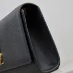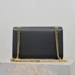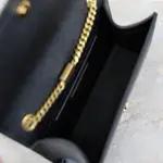 Този модел от престижната колекция въплъщава същността на съвременната елегантност. Изработена от висококачествена кожа с фина текстура или мек велурен завършек, чантата предлага изтънчено усещане и безупречен стил. Класическият правоъгълен силует е допълнен от деликатна верижка, която придава лекота и модерно излъчване. Металният акцент отпред подчертава иконичния дизайн и носи дискретен луксозен подпис. Компактният, но функционален вътрешен обем я прави идеален избор за вечерни излизания и елегантни поводи.