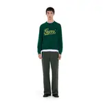 Този плетен пуловер от емблематичната линия на модната къща съчетава носталгичен чар с ясно заявена съвременна идентичност. Изработен от висококачествена вълна, моделът впечатлява с плътна, но лека текстура, която осигурява топлина без компромис с естетиката. Централният интарзен надпис добавя артистичен щрих и превръща класическия силует в запомнящ се акцент. Рипсените кантове по яката, ръкавите и подгъва осигуряват перфектно прилягане и дълготрайна форма. Създаден за стилно присъствие в по-хладните сезони.