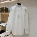 Моделът „Long-Sleeved Signature Shirt“ от престижната колекция интерпретира класическата риза през призмата на съвременния лукс. Изработена от висококачествен памук с гладка и фина текстура, тя предлага безупречен силует и усещане за лекота. Правата кройка и изчистената конструкция подчертават минималистичната естетика на дизайнерския дом, докато графичният надпис върху джоба добавя характерен и разпознаваем акцент. Прецизните копчета и вниманието към детайла завършват цялостната визия с премиум излъчване. Идеален избор за модерния мъж, който цени дискретния, но категоричен стил.