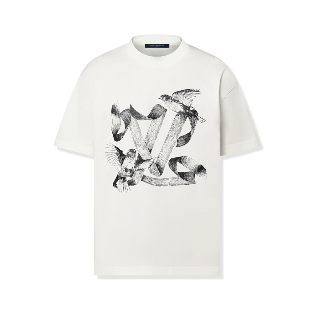Birds Printed Cotton T-Shirt – артистичен минимализъм с характер