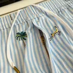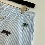 Този комплект от риза и къси панталони от престижната колекция съчетава лекота, свежест и артистичен детайл. Фините вертикални райета в светлосиньо създават усещане за изчистен летен минимализъм, докато бродираните мотиви с екзотични животни и палми добавят характер и отличителен стил. Луксозната линия залага на лек и дишащ плат, който осигурява комфорт през топлите дни, а свободният силует подчертава модерната, небрежна елегантност. Ризата е с класическа яка и копчета, а шортите са с еластична талия за максимално удобство. Емблематичният дизайн съчетава игривост и изисканост – перфектен баланс между ваканционна лекота и модерен градски стил.