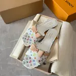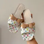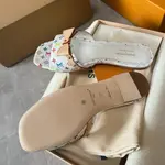Моделът „6AM Flat Mule“ е израз на смел стил и съвременна елегантност, вдъхновен от иконичния дизайн на модната къща. Фината изработка комбинира гладка повърхност с характерен многоцветен принт, който придава уникалност и разпознаваемост. Отвореният силует осигурява лекота и комфорт, докато декоративната каишка добавя изискан завършек. Подметката е фина и стабилна, създадена за безупречно усещане при всяка крачка. Перфектен избор за визии, които търсят баланс между артистичност и минимализъм.