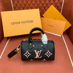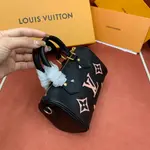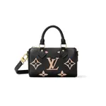 Чантата „Nano Speedy“ от луксозната линия на модната къща е символ на вечната елегантност и вниманието към детайла. Изработена от висококачествена естествена кожа с фина текстура, тя впечатлява с емблематичния си графичен мотив и контрастните златисти акценти. Компактната ѝ форма съчетава функционалност и стил – с твърда структура, подвижна презрамка и удобни дръжки за носене в ръка. Вътрешността е прецизно завършена, за да осигури перфектен ред и комфорт при ежедневна употреба.