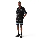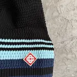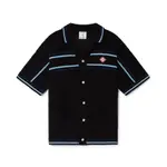 Този сет от дизайнерския дом е ода на безвремието и класическата тенис естетика. Изработен от дишаща памучна прежда с ръчно изплетена текстура, той носи артистично излъчване и ненатрапчива луксозност. Ризата впечатлява с отворена яка, къс ръкав и перлени копчета, докато шортите с еластичен колан и пристягащи връзки предлагат максимален комфорт и свобода на движение. Контрастните ивици по краищата в свежи цветове създават динамичен, но балансиран силует – идеален за ваканционен стил с внимание към детайла.