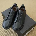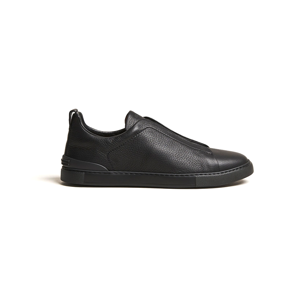 Този слип-он модел от дизайнерската колекция представя минимализма в най-прецизна форма. Изработен изцяло от висококачествена естествена кожа с фина текстура, силуетът е изчистен и съвременен, без връзки – за максимално удобство и визуална лекота. Вътрешната подплата и гъвкавата подметка осигуряват комфорт при продължително носене, докато изчистеният черен цвят придава универсалност и престиж. Перфектен баланс между спортна свобода и градска елегантност.