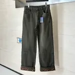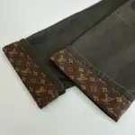 Моделът „Waxed Denim Pants“ представя съвременна интерпретация на класическия деним, създадена от дизайнерския дом с внимание към детайла и текстурата. Платът с восъчно покритие придава лек блясък и дълбочина на цвета, създавайки усещане за премиум изработка и характер. Правият силует с леко разширение към долната част оформя модерна линия, която стои елегантно и уверено. Отличителният подгъв с монограмни мотиви добавя дискретен, но разпознаваем акцент от престижната колекция.